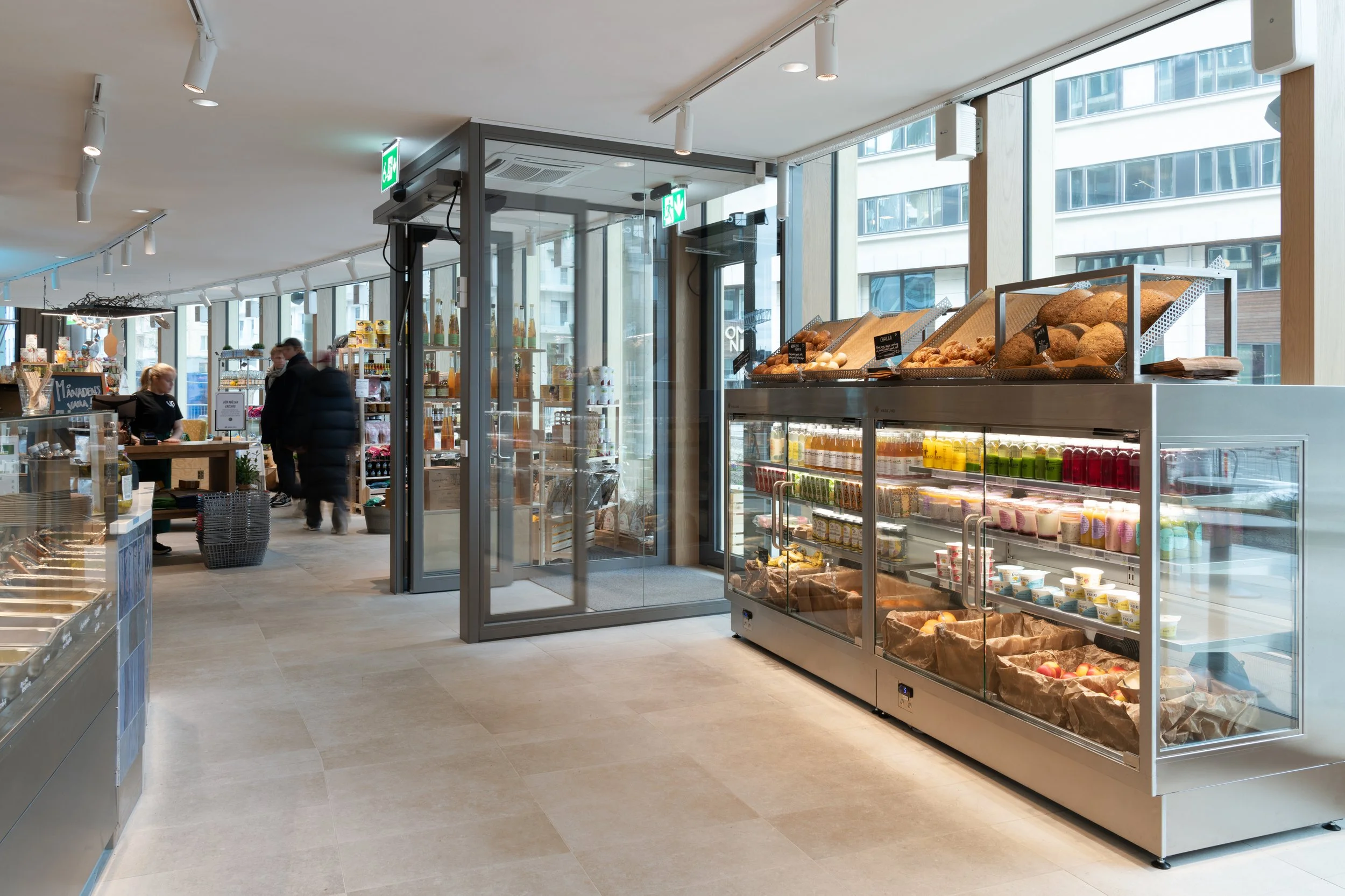 Med tillgång från båda håll kan personalen fylla på från lagret utan att störa kundflödet i butiken. Smidigt. Proffsigt. Lönsamt.