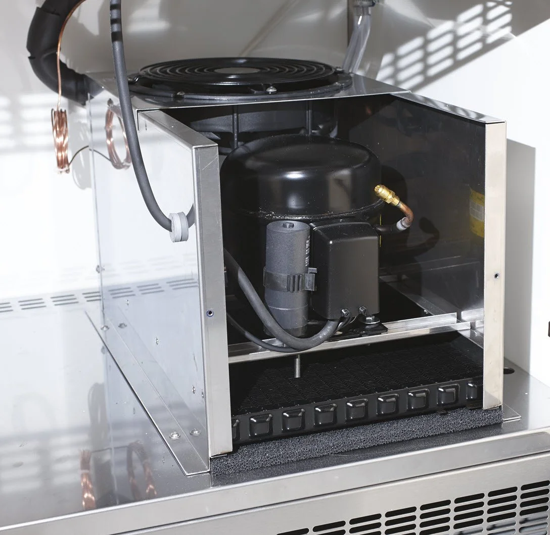 Kondensorn kyls med luft underifrån för bästa luftcirkulation.