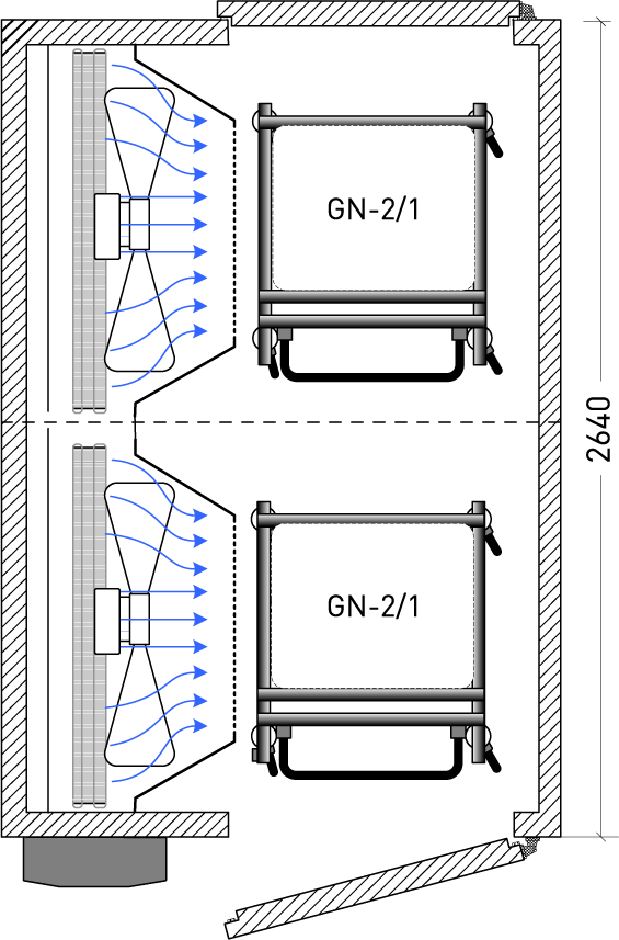 Kapacitet avser nedkylning från +70˚C till +3˚C på 90 minuter. Verklig kapacitet påverkas av en mängd olika parametrar, rådfråga oss gärna så hjälper vi till att hitta rätt nedkylningsrum för ert behov.