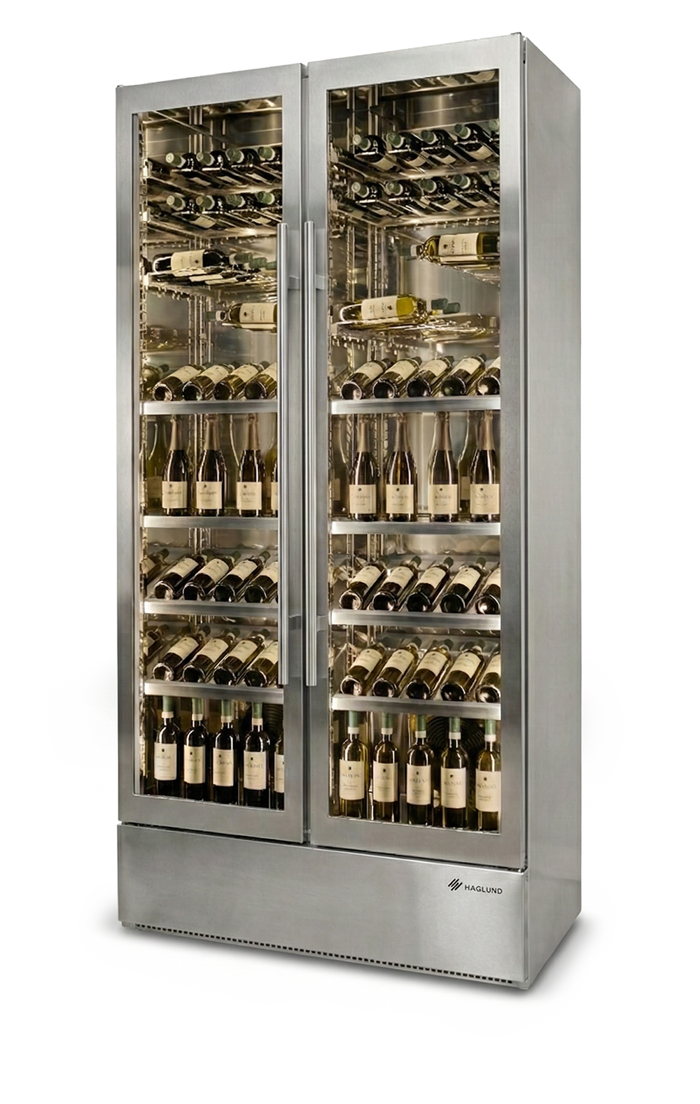 Vår vinkyl lever upp till sitt namn. Designen är klassisk och använder sobra material. Hyllorna visar flaskorna stående, liggande eller lutande. Med integrerad LED-belysning får du stora möjligheter att jobba med en smakfull exponering.